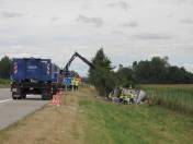 und im Graben zum liegen gekommen. Der technische Zug des THW Markt Schwaben