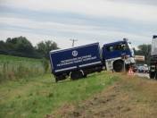 zwischen Erding und Freising ein LKW mit Anhänger von der Fahrbahn abgekommen