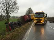 Zusätzlich zu den Rettungskräften der Feuerwehr und des roten Kreuz wurde der THW Fachberater alarmiert. Nach Freigabe der Unfallstelle durch die Polizei wurde gegen 9:30 der Technische Zug zur Unterstützung der Bergung des in einen Graben umgestürzten LKW.